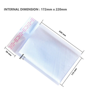 172mm x 220mm DL Size Bubble Padded Bag Mailer White Plain Kraft Cushioned Envelope