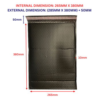 Protect your parcels in style with our black poly bubble mailers, sized 265 × 380 + 50 mm.
