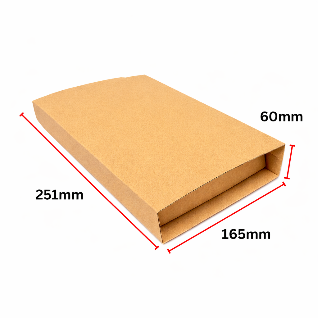 Keep your shipments safe and professional with this Book Wrap Box (251x165x60mm). Designed with adjustable depth and a self-seal adhesive strip, this corrugated mailer is perfect for securely packaging books, DVDs, and other small items. Ideal for e-commerce businesses and online sellers looking for efficient, eco-friendly packaging.