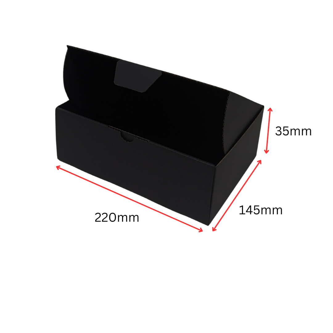 Full Black Die Cut Mailing Box 220 × 145 × 35 mm – Cardboard Shipping & Packing Box