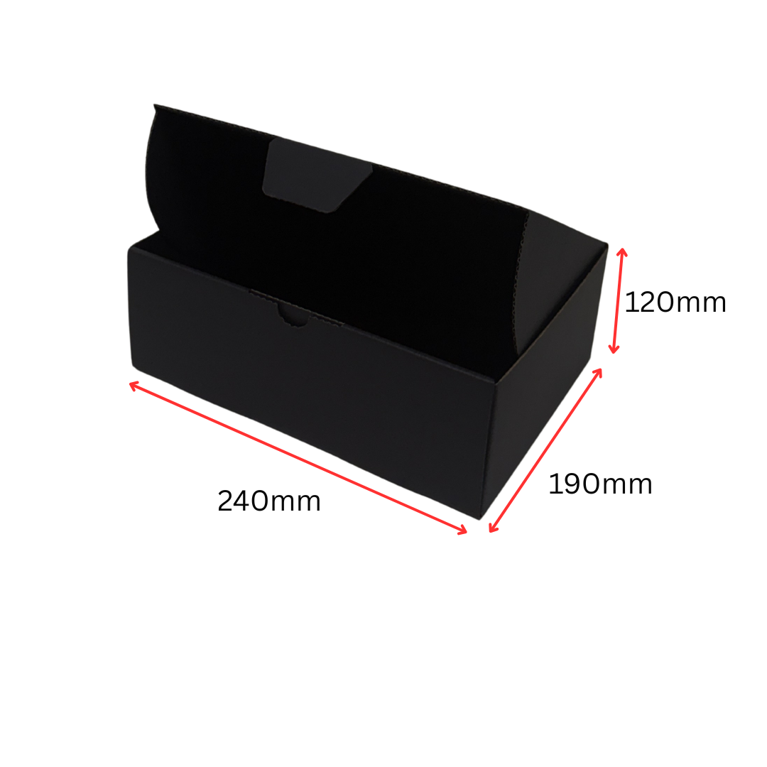Full Black Die Cut Mailing Box 240 × 190 × 120 mm – Cardboard Shipping & Packing Box
