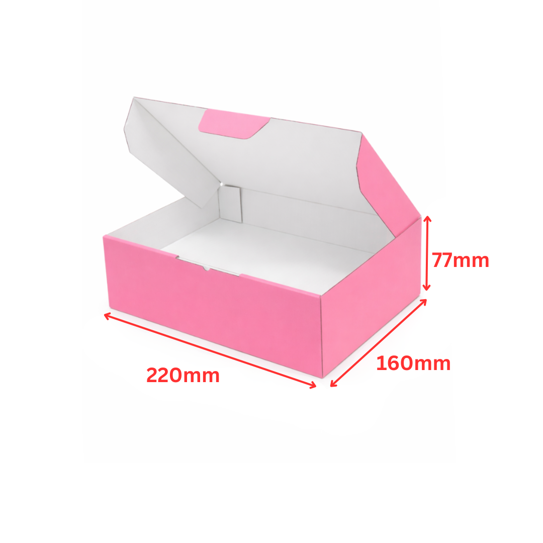 Pink Mailing Boxes 220 x 160 x 77mm | OZPACK Cardboard Shipping Boxes with White Interior | Die Cut Mailer Boxes